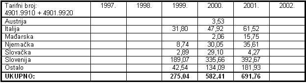 oznaka 4901) iznosi ako su porijeklom iz Europe ili ostalih zemalja