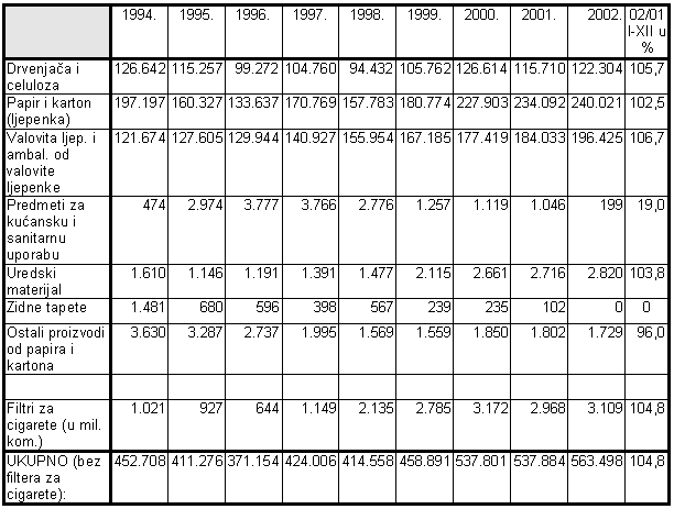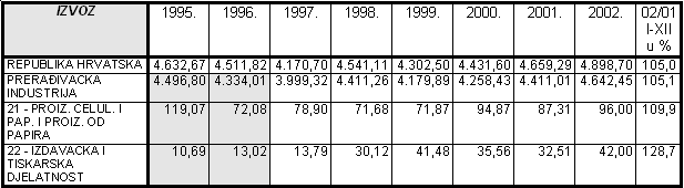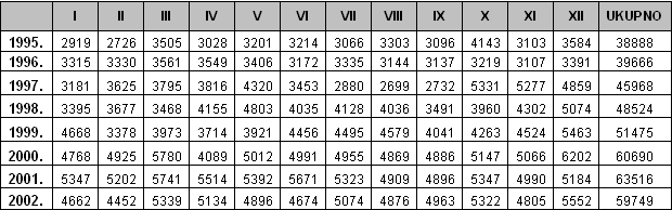 razdoblje od 1995. do I-XII. 2002. godine dat je u tablici 4.1.