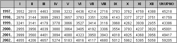 je prema podacima Državnog zavoda za statistiku prošle 2002. godine