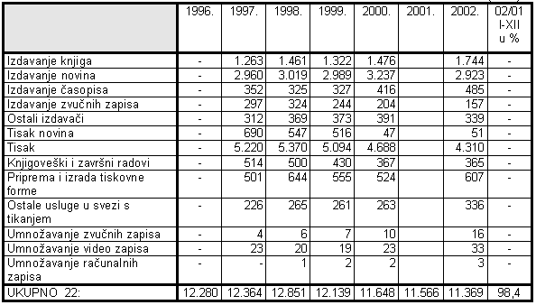 Tablica 2.2. - Izdavačka i tiskarska djelatnost