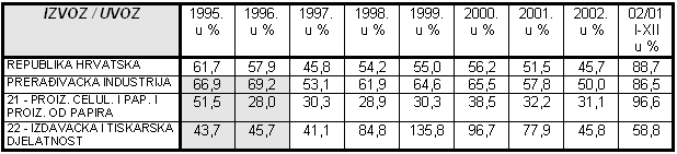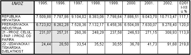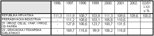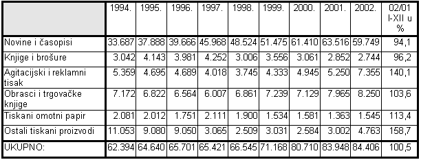 grafičko-prerađivačke industrije zaključno s I-XII 2002. godine u