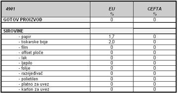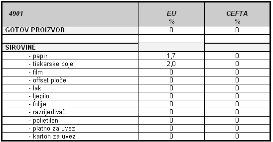 Pri uvozu sirovina za izradu knjiga, carinske stope iznose: