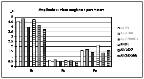 Measurements of the hybrid roughness parameters Rk, Rpk, Rvk have shown that there is a reduction both on the Ag surface and on the aluminium-oxide surface. The results are shown in fig. 4). The reduction of the Rk parameter points at the reduction of the roughness core depth. The reduction of the Rpk parameter signifies the smoothing of the surface, and the decrease of the Rvk parameter points at the reduction of the deeper tracks. These results are confirmed by the comparative presentation of the diagrams, as shown in the fig. 5.