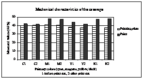 It can be seen that after the print run there is a noticeable decrease of the coverage percentage on the printing plates as well as on the prints. It is assumed that the reduction of the ink transfer on the paper come as a result of wearing of the copying layer on the printing surfaces, that is as a result of the reduction of the printing plates surface roughness. On parts of the printing surfaces which contain copying layer (Ag) an aluminium surface arises after the long print run. Such surface will not accept ink and transfer it to the paper due to its characteristics which are different than those of the copying layer. Because of that there is a reduction of ink transfer and the reduction of the surface coverage of the prints.