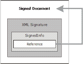 <Signature> <SignedInfo> (CanonicalizationMethod) (SignatureMethod) (<Reference (URI=)? > (Transforms)? (DigestMethod) (DigestValue) </Reference>)+ </SignedInfo> (SignatureValue) (KeyInfo)? (Object)* </Signature>