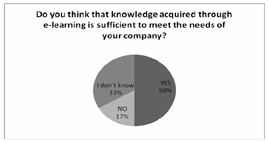 When asked if they had been informed about the option of e-learning, 80% of the interviewees provided a positive answer. Over 70% of participants favoured traditional methods of transferring knowledge and only 29% stated they were ready to take part in e-learning. There are areas that cannot be taught only electronically. Therefore a combination of learning via the Internet and traditional learning has been suggested.